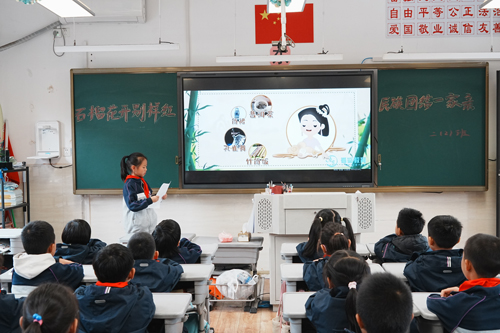 二年级的同学们摇身一变,成了“小小石榴研究员”,在老师的指导下,全方位挖掘石榴的“小秘密”,开启了一场奇妙的探究之旅。从石榴的生长过程,到实用价值,从石榴的常见品种,到它的文化起源与传播,知识边界在互动中不断拓展。交流环节结束后,孩子们将探究成果转化为创意作品:色彩斑斓的手抄报、图文并茂的探究卡片、笔锋稚嫩的诗歌书法作品……每一笔勾勒,每一段文字,都满含着他们对大自然的热爱、敬畏和感激之情。