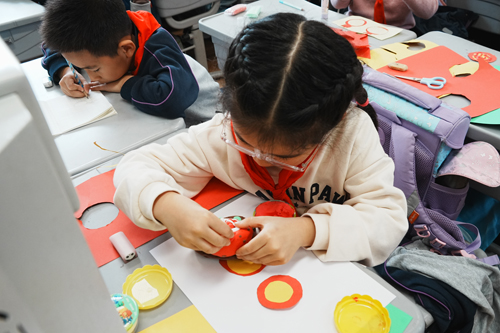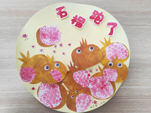 采摘活动结束后,一场热闹的“石榴创意大作战”拉开帷幕。有的比拼“剥石榴籽”技巧,看谁能又快又完整地取出石榴籽;有的掂量石榴重量,寻找班级“石榴王”;有的制作美味石榴果茶,让劳动的香甜在舌尖绽放;还有的拿起画笔,将对石榴的喜爱融入画作,一幅幅童趣的创意画跃然纸上……孩子们用喜欢的方式分享劳动成果,欢声笑语中,丰收的甜蜜在校园的每个角落久久弥漫。